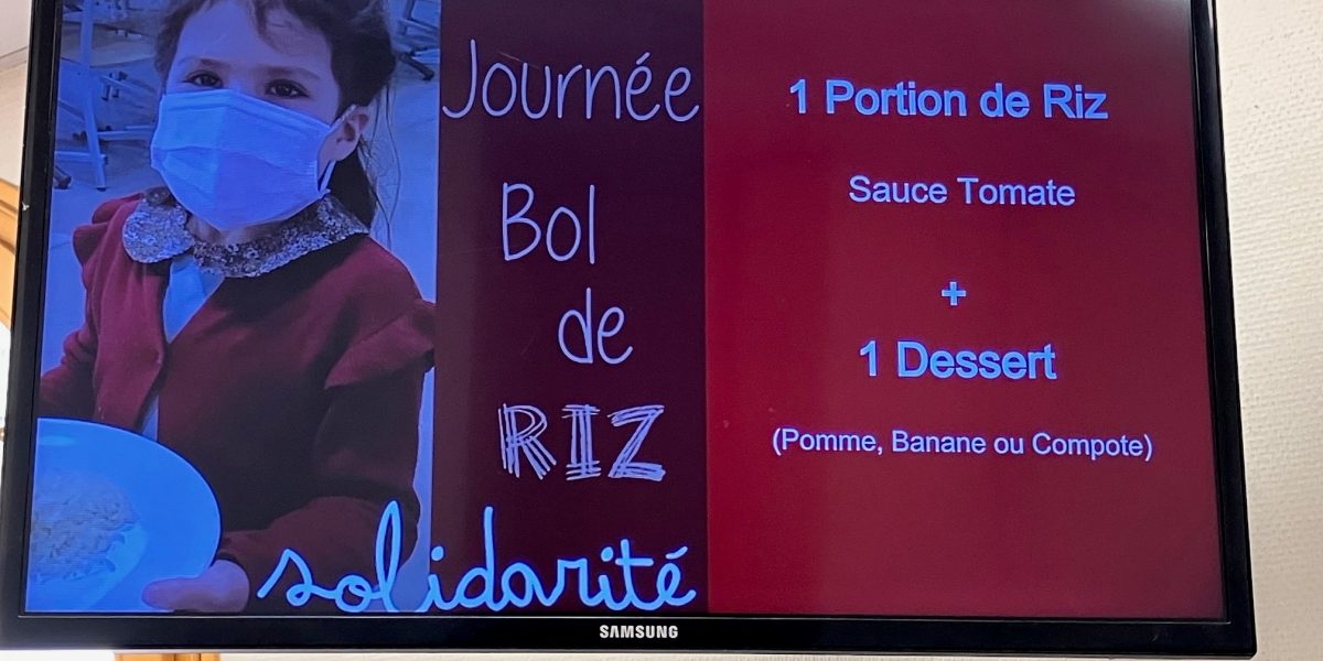 Le principe : les Ă©lèves (et les Adultes) qui le souhaitent ne mangent qu’un bol de riz pour le prix d’un repas Ă la cantine. La diffĂ©rence entre le coĂ»t habituel du repas et le coĂ»t du bol de riz est reversĂ©e Ă des Associations.