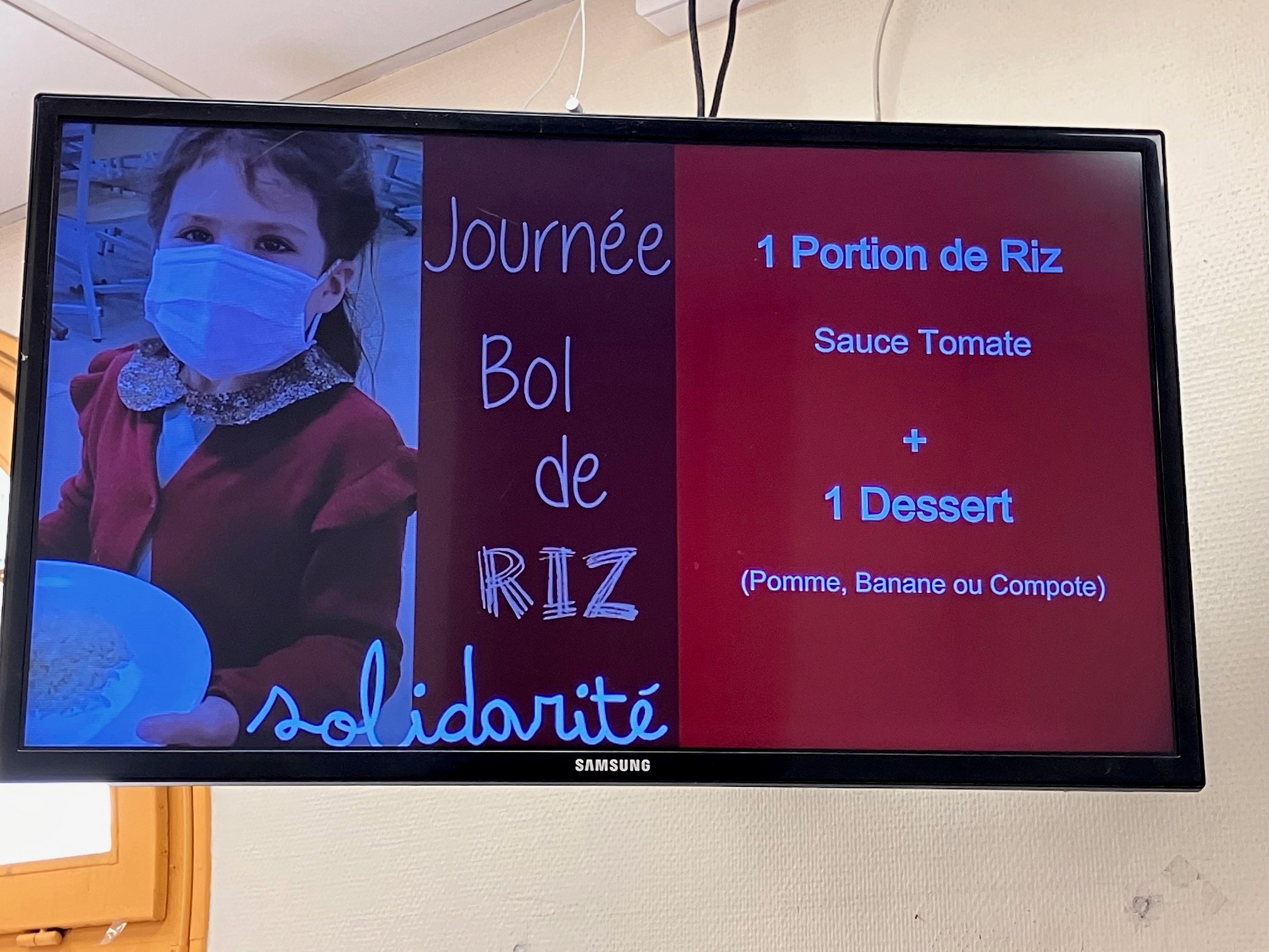 Le principe : les Ă©lèves (et les Adultes) qui le souhaitent ne mangent qu’un bol de riz pour le prix d’un repas Ă la cantine. La diffĂ©rence entre le coĂ»t habituel du repas et le coĂ»t du bol de riz est reversĂ©e Ă des Associations.